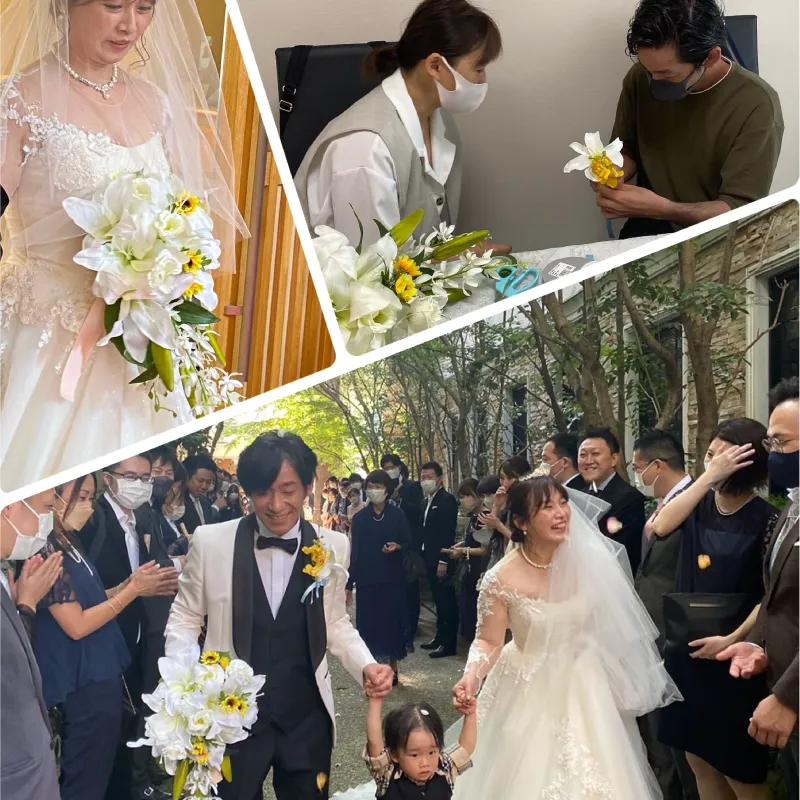 ブーケ・ブートニア・ヘッドドレス、ご両親様への贈呈品などを制作いただきます。