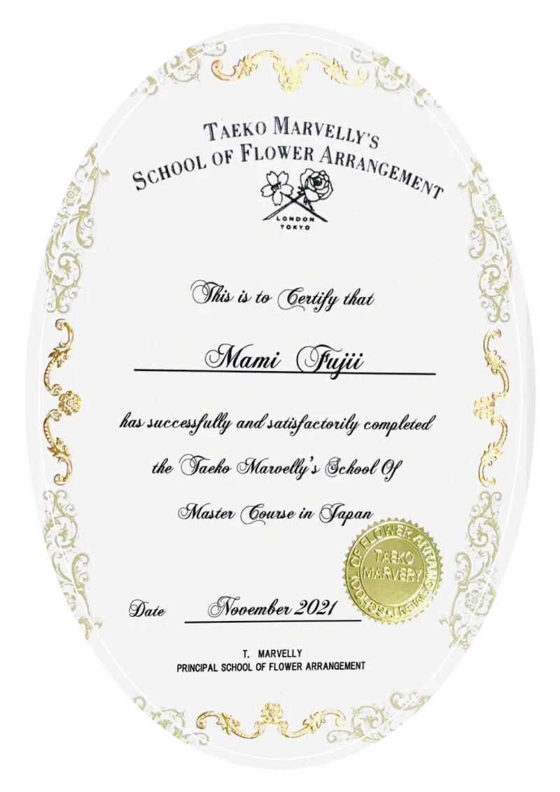 ※そのほか、英国TaekoMarevlly Flower School<入会金5,000円+年会費5,500円>が別途かかります。