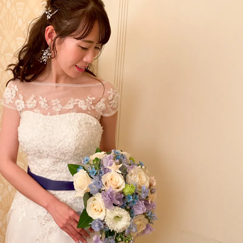 お式に向けて事前にゆっくりと準備・制作ができ、挙式後も思い出とともに永く飾っていただけるブーケです。